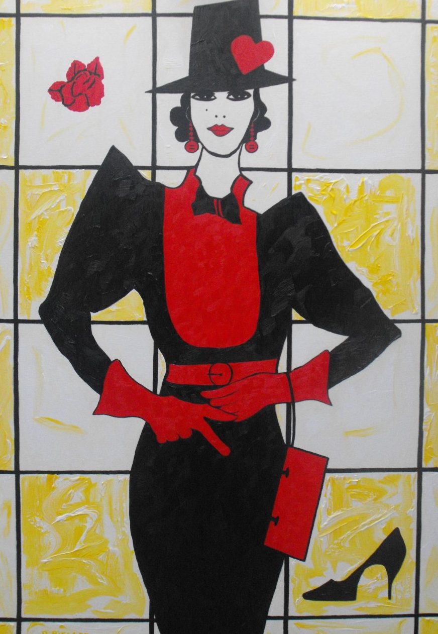 Een globale impressie van het schilderij "Ode aan mode ontwerpster Fong Leng" 70x100cm.
