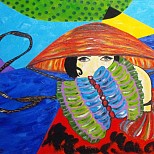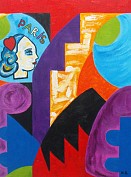 Kleurrijk abstract schilderij in de Art Deco stijl