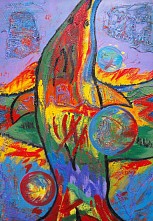 Gemengde techniek op linnen doek