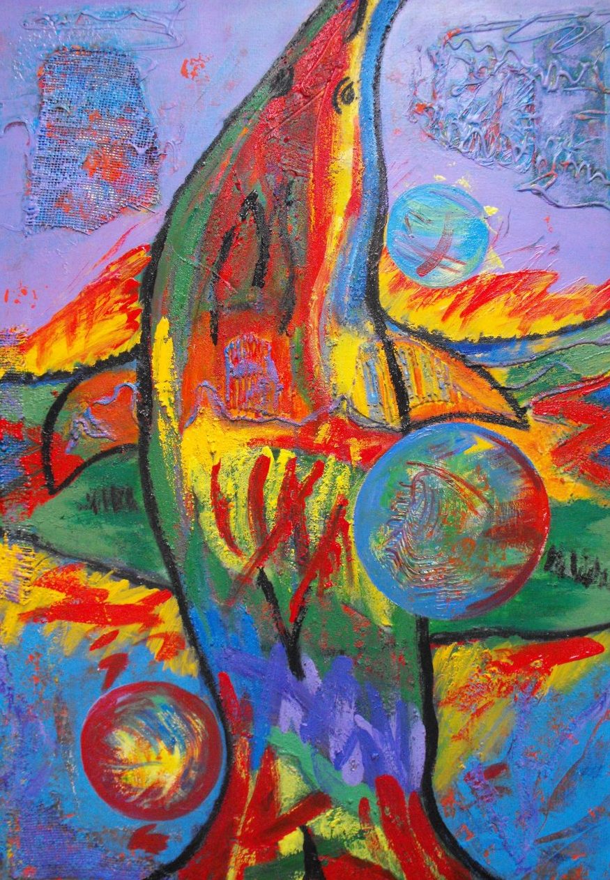 Een globale impressie van het schilderij "Dolfijn" 70x100cm.
