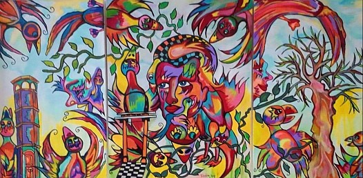Een globale impressie van het schilderij "Find your own way" 240x80cm.