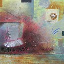 Acryl op doek, gemengde technieken, karton acrylpasta.