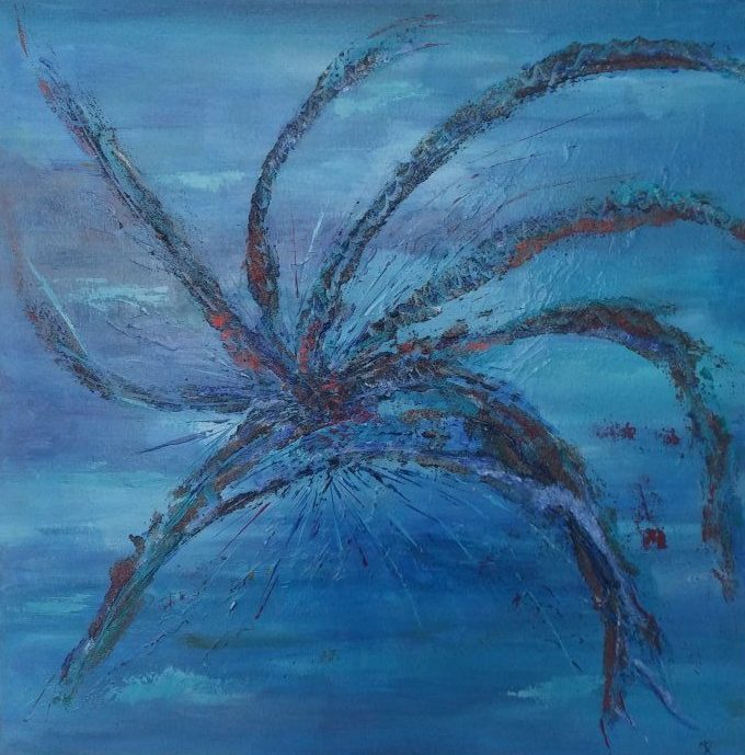 Een globale impressie van het schilderij "Tentakels" 60x60cm.