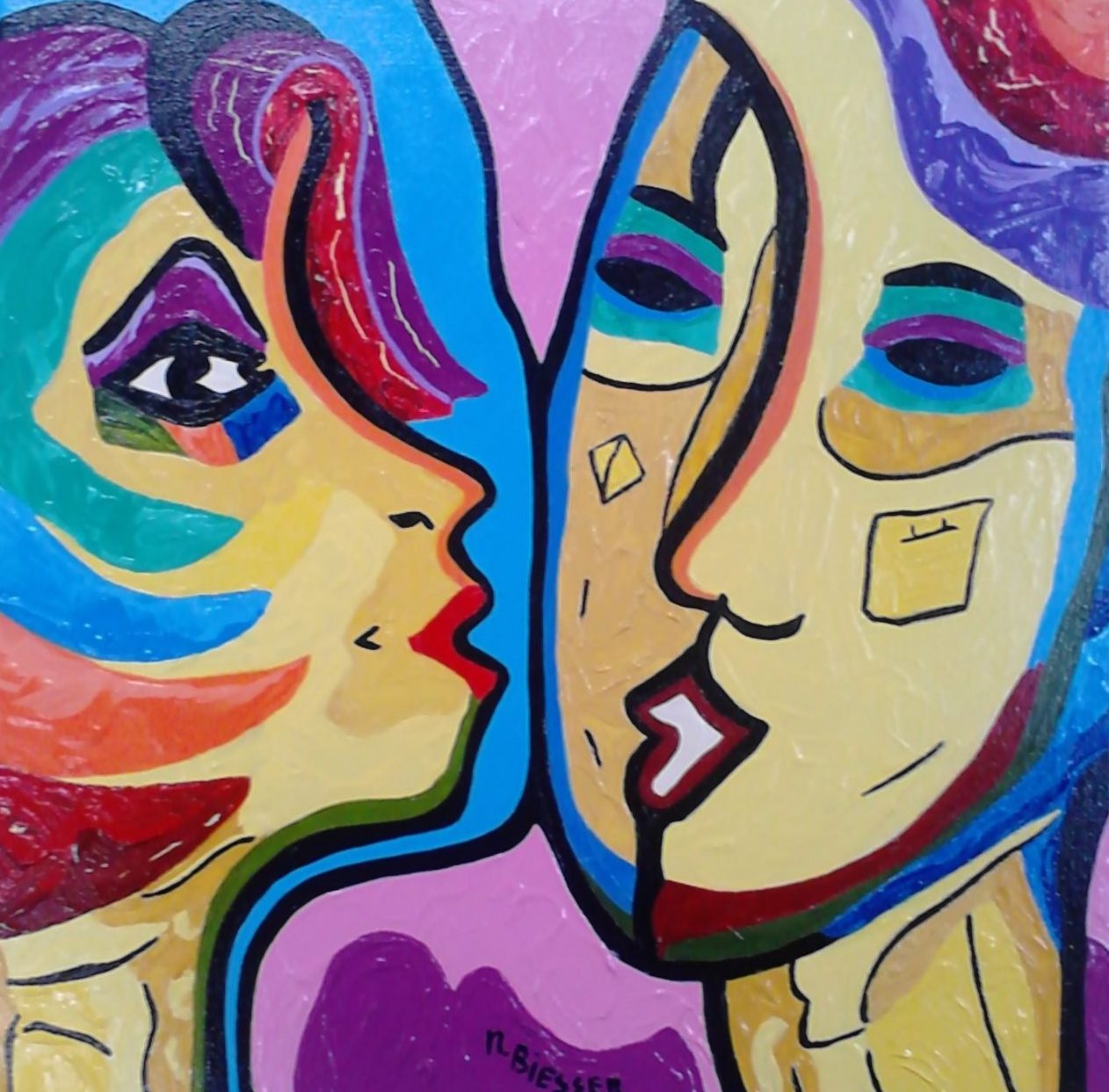 Een globale impressie van het schilderij "Zie u graag" 40x40cm.