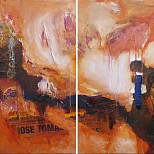 Door mijn werken in de serie 'A Space Odyssey' belandde ik weer in de abstractie.. Mijn eerdere (ook recente) abstracte werken waren bijna altijd in acryl, maar bij dit nieuwe doek heb ik uitsluitend gewerkt met olieverf. De kleuren en vormen moeten hun werk doen, en de kijker aan de betekenis daarvan een eigen invulling laten geven. Kunst is immers altijd: VERBEELDING. Imagination 5.