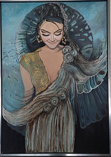 Acrylverf en structuurpaste geschilderd