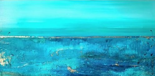 Een globale impressie van het schilderij "Great barrier reef" 100x50cm.