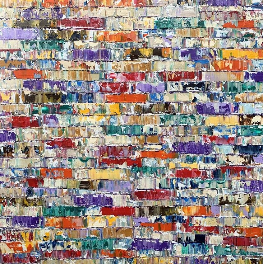 Een globale impressie van het schilderij "Kiribati-pacific" 124x124cm.