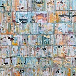 Een globale impressie van het schilderij "Majuro" 164x164cm.