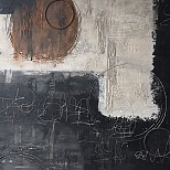 Met een donkere, zwarte achtergrond een verrassend schilderij met veel licht, rood en oranje. Als dit schilderij of goed belicht wordt, of op een lichte plaats hangt, dan is het een beauty !!